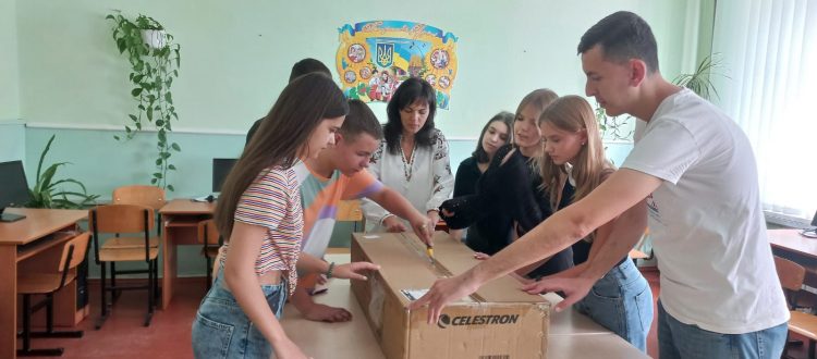 Three telescopes have arrived at the schools of astronomy students in Ukraine who requested them to take advantage of skies darkened when the power grids are targeted by missiles, providing a glimmer of hope in the night sky thanks to the generous donors who made the gift of these telescopes possible.